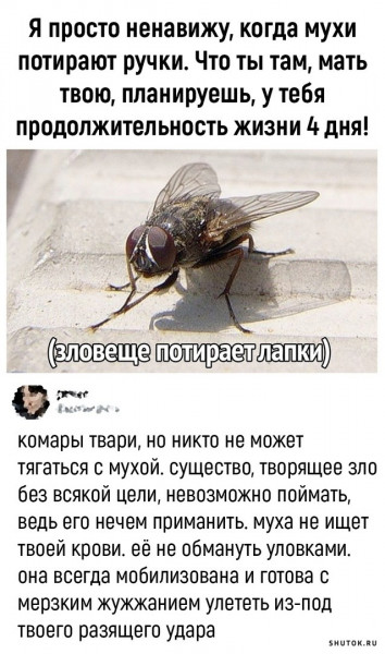 Когда муха потирает ножки - лучший момент, чтоб ее убить ладонью.