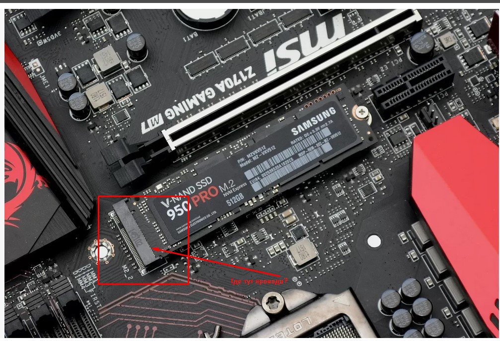 Да, в интерфейсе М2 нет провода. Есть дорожки-проводники, есть один разъем, это же есть и у SATA, а провода, который есть у SATA, дополнительно к дорожкам - нет. Не знаю уж как еще очевидное объяснить. Если картинки мало и слова не понятны, я тут ничего поделать не могу.