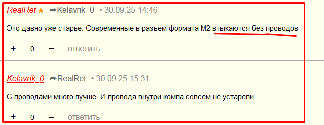 Чем это лучше, интересно? У интерфейса SATA III (старше нет и уже не будет), от которого провода на фото пропускная способность по спецификации 600 Мб/с (это на практике недостижимо), а у NVMe PCIe 5.0 M.2 до 14 000 Мб/с.