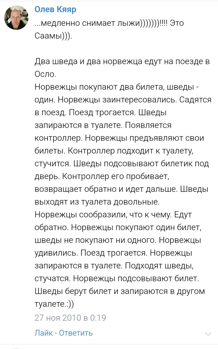 Ну... Я слыхал в интерпретации, где вместо шведов и норгов были админы и юзеры. С моралью "Что доступно админам, не доступно юзерам.