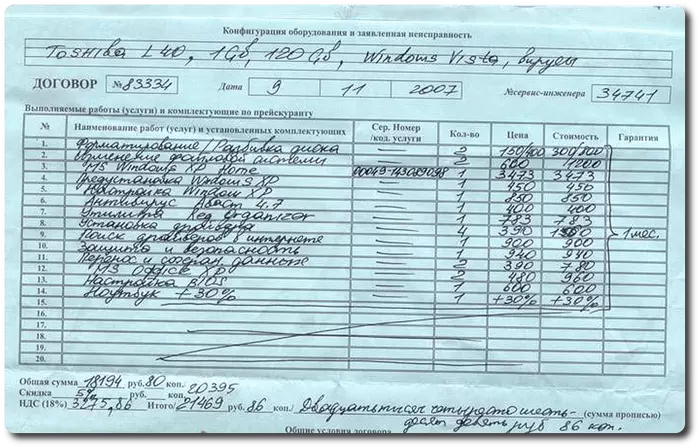 Позвали меня, я квитанцию посмотрел со списком выполненных работ и с трудом сдержался от смеха. При этом ничего такого "мастер" не делал, а просто развернул скачанный из Интернет образ с кучей лишнего барахла и троянами.