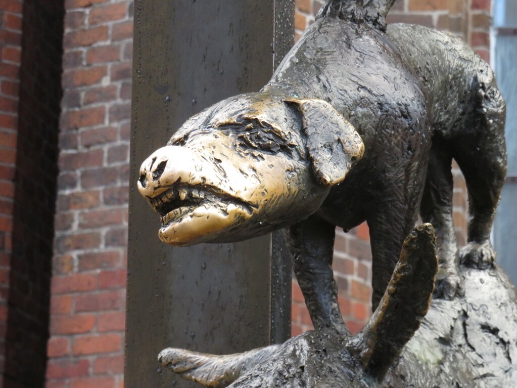 И вот как-то в Германии приехал в славный городок Бремен, известный на весь мир своими животными-музыкантами. Оставил мотоцикл просто на какой-то улице и пошёл гулять по центру. А хорошенько погуляв (и отметившись у знаменитого музыкального квартета), я вдруг осознаю, что совершенно не помню, на какой именно улице находится мой мотоцикл. К счастью, обычно я сразу везде начинаю всё вокруг фотографировать, поэтому первым делом стал просматривать фотографии в надежде найти название улицы или приметную точку поблизости. И нашёл... козла! Да, там действительно был памятник козлу! Дальше осталось через гугл-транслейт выяснить как пишется козёл по-немецки, а затем через навигатор, найдя этого Ziegel на карте города, проложить к нему пеший маршрут.