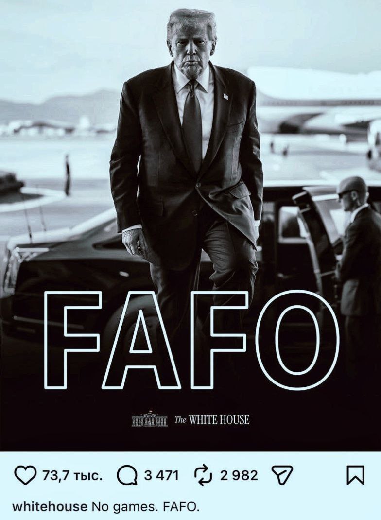 Белый дом запилил в твиторе фоточку с надписью "игры кончились" и аббревиатурой FAFO - fuck around and find out. Что означает: будешь выёживаться - получишь звезды.