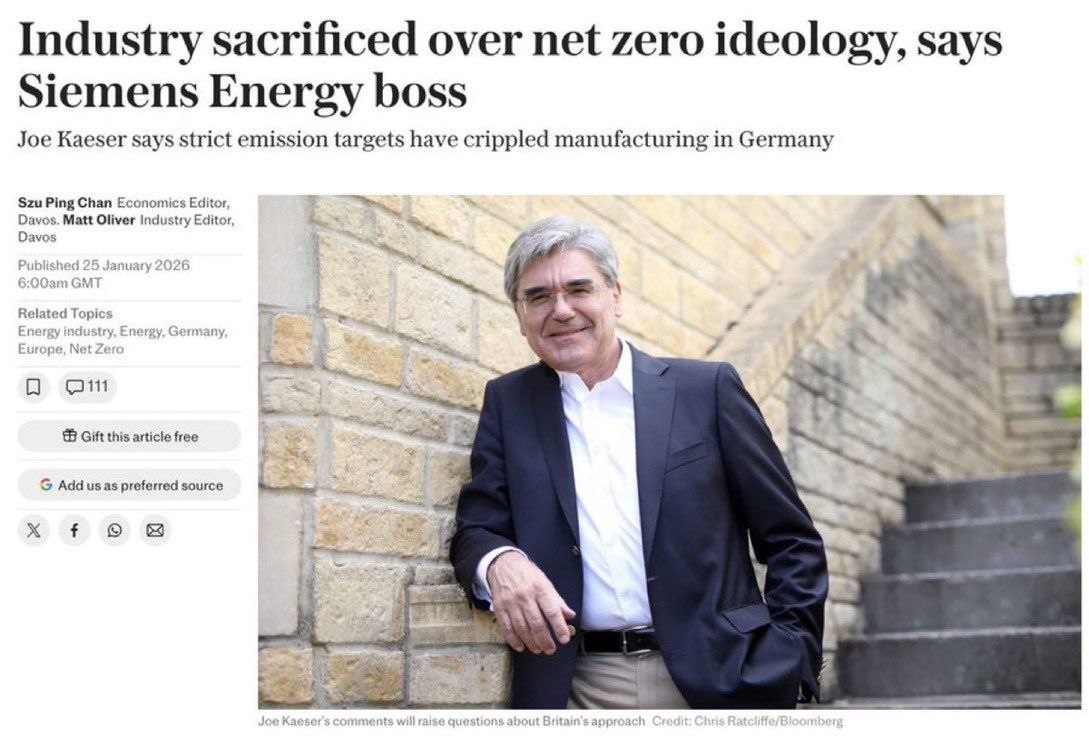Глава Siemens Energy заявил, что ради "зеленой" идеологии и нулевых выбросов углерода были принесены в жертву многие отрасли промышленности.