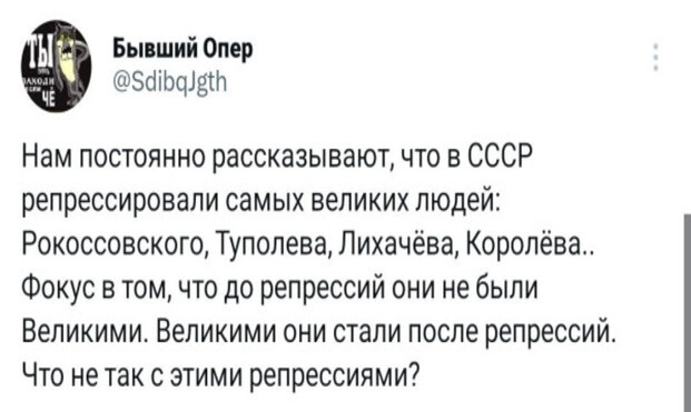 Регулярно наталкиваюсь на вот такие "мудрые" изречения, можно сказать крылатые фразы, блещущие недюжинным интеллектом и умищем. Что нужно чтобы человек стал гением и изобретателем по мнению совкочленов? Именно так, на кичу посадить вообще всех, применять карцер и паяльную лампу